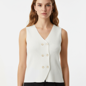 SLEEVELESS V NECK BUTTON FRONT VEST